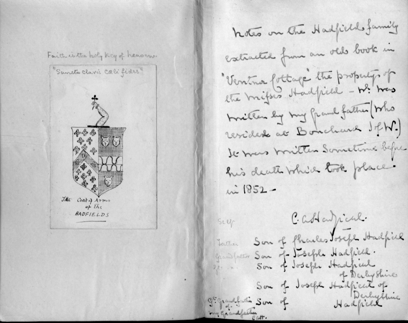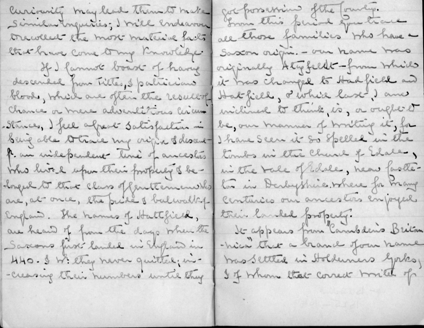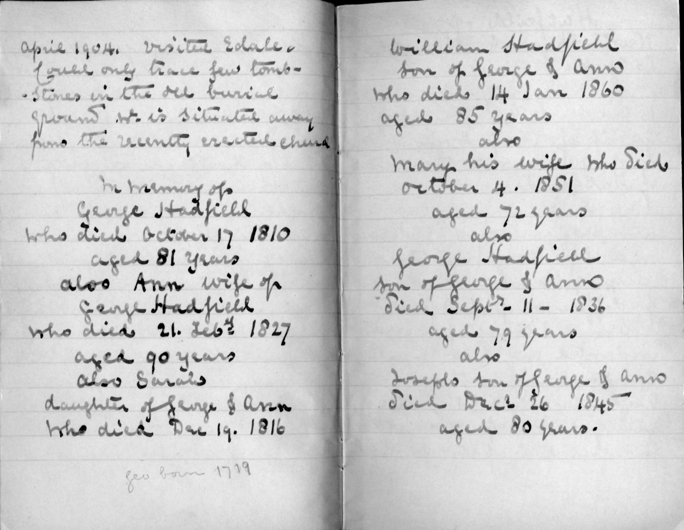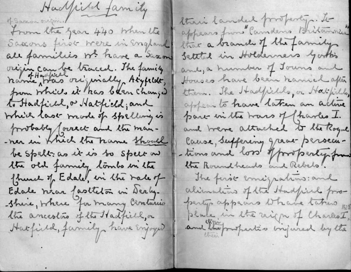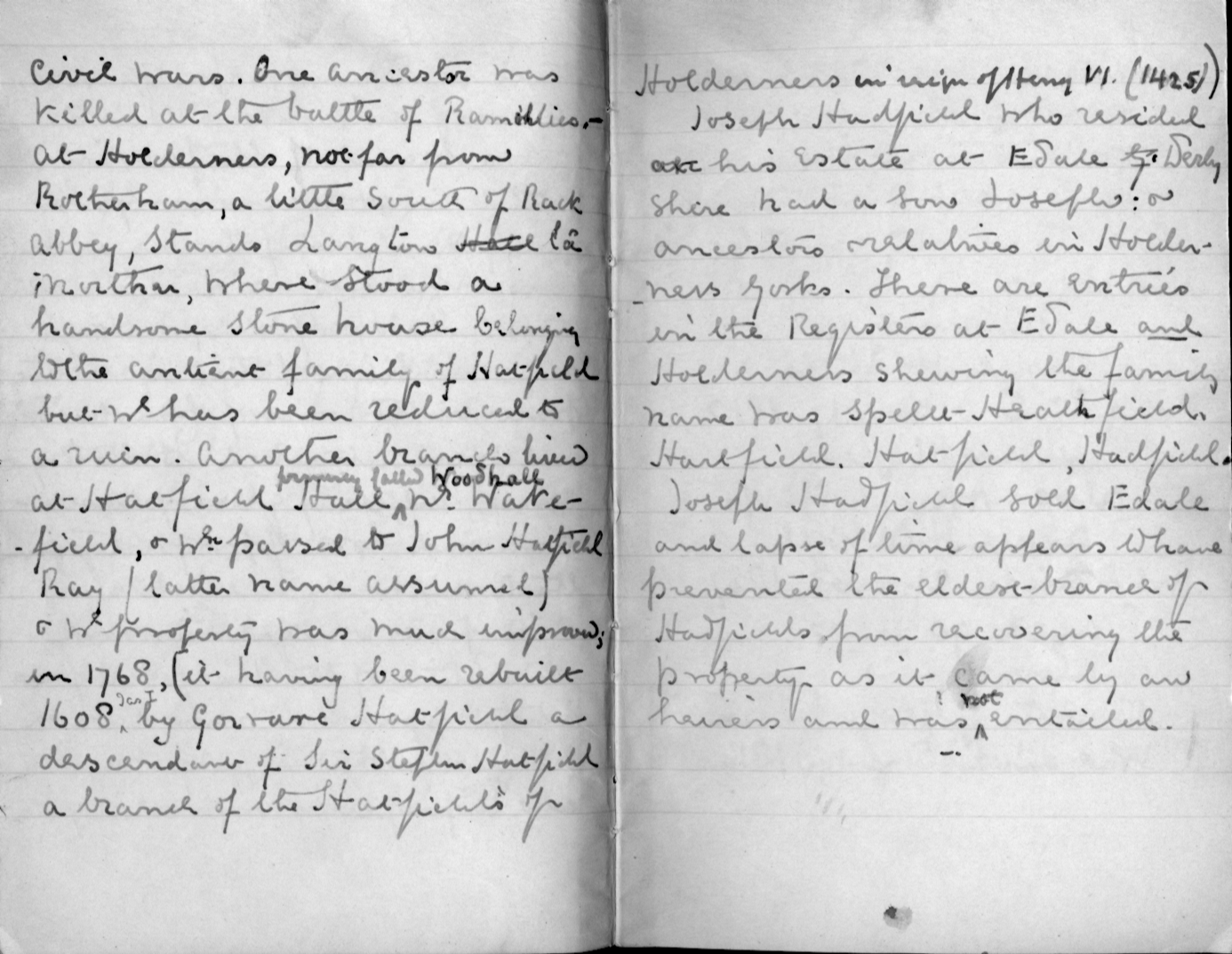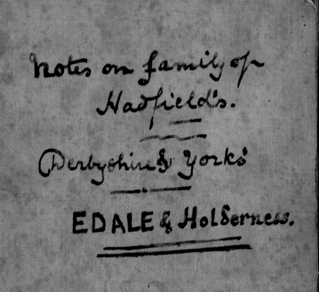 Notes on family of Hadfields; Derbyshire & Yorkshire; EDALE & Holderness.