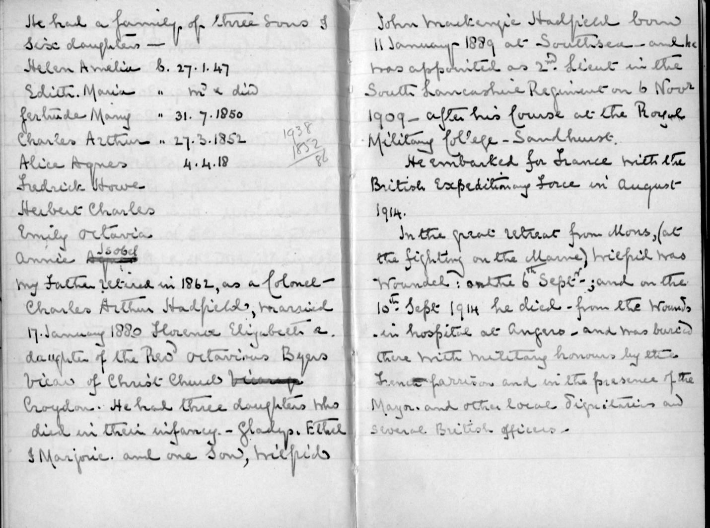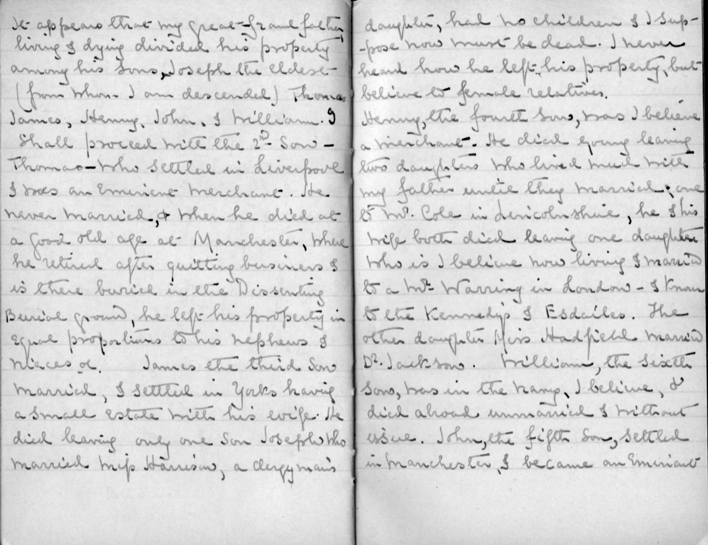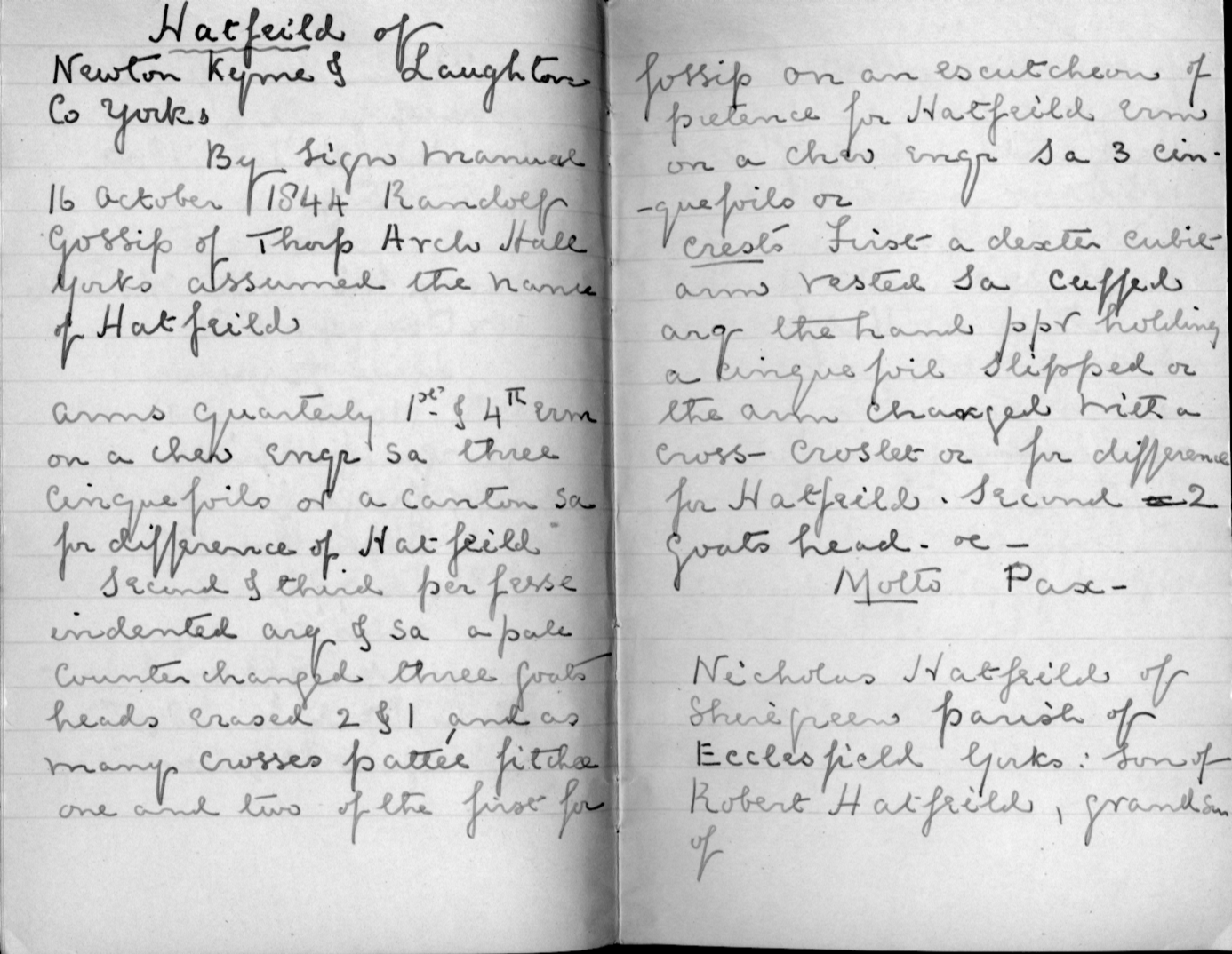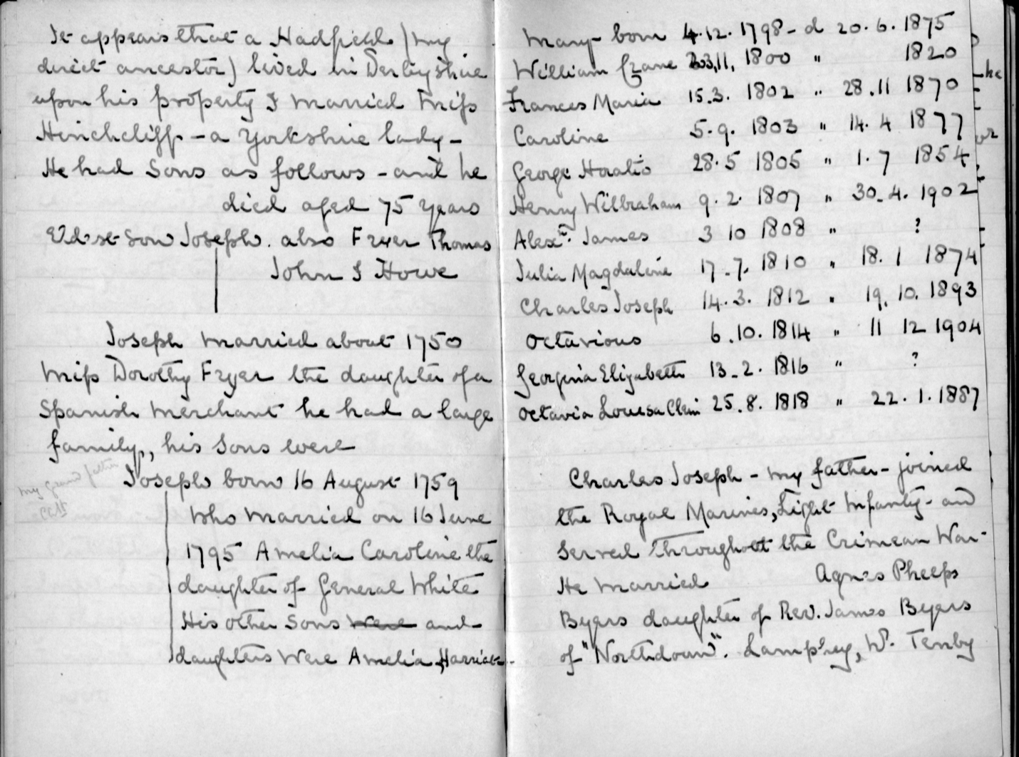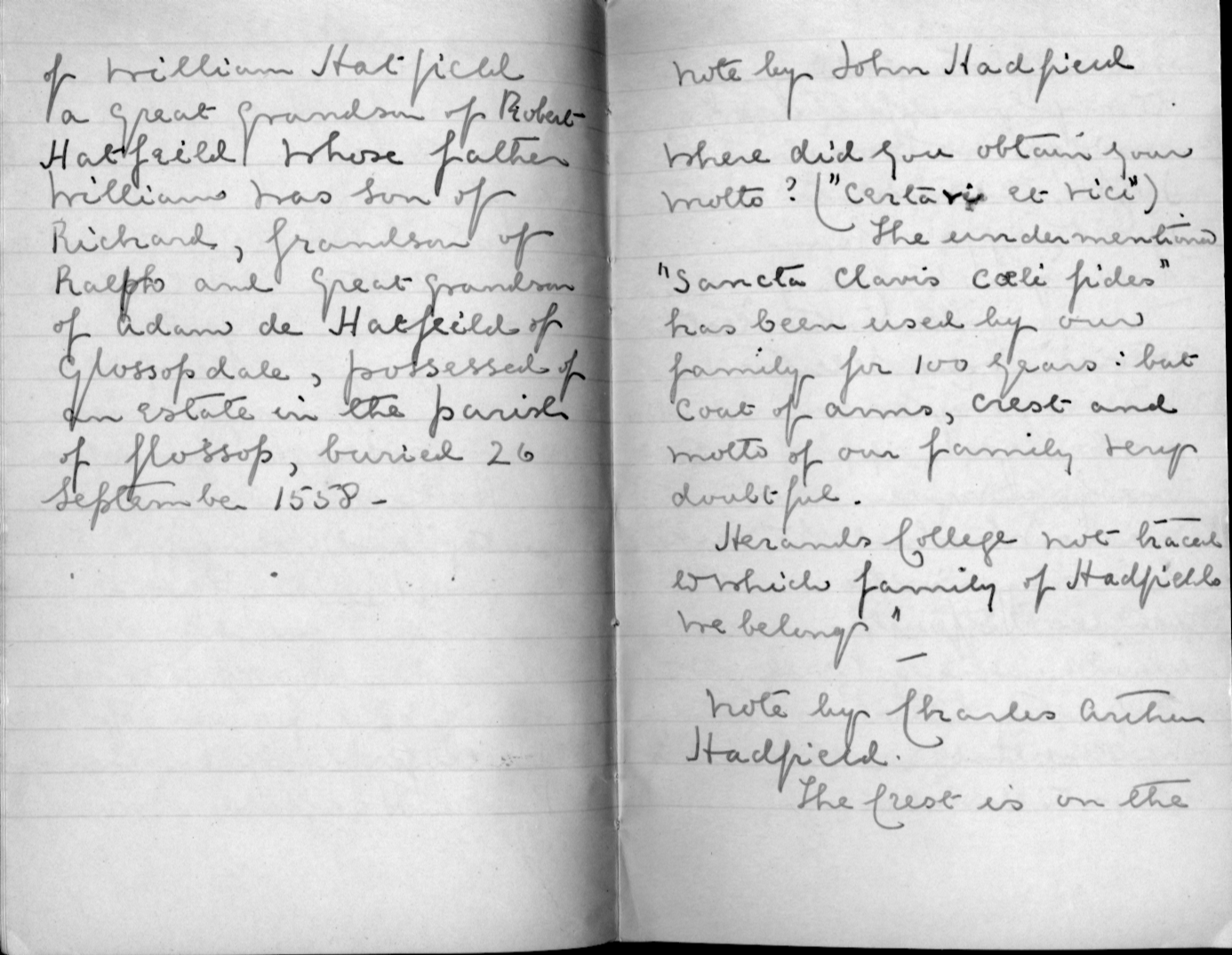 Notes on family of Hadfields; Derbyshire & Yorkshire; EDALE & Holderness.
